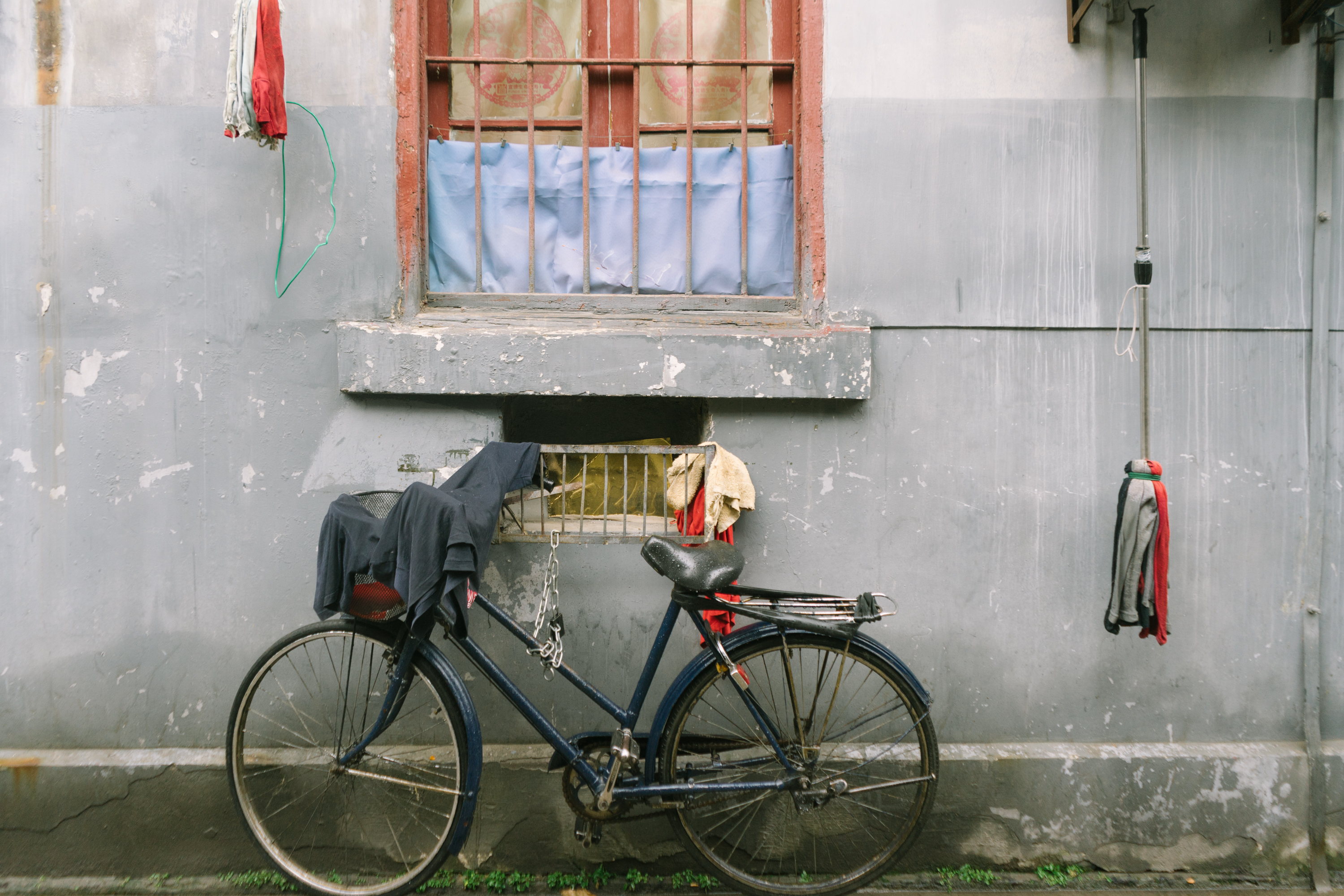 在坤厚里,每一个角落都有它存在的价值,每一件物品都物尽其用,比如停放自行车的窗檐,比如承受锁链的铁栏。