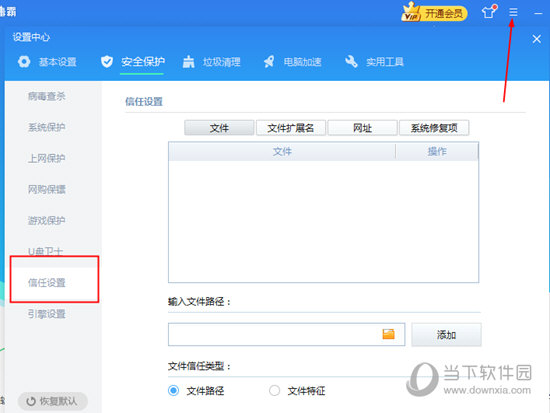正在设放里面,进入【平安庇护】栏目,正在【信赖设放】的菜单外即可添加信赖的文件和文件夹。并且你能够添加网址和系统修复项。